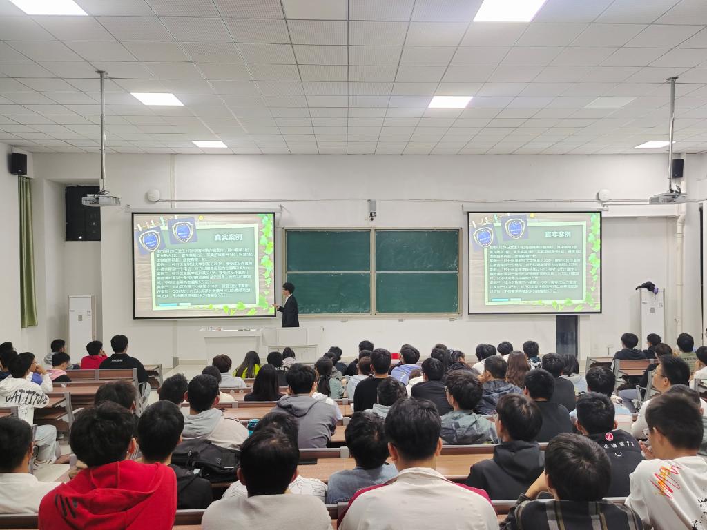 随后,陈友悝、毕浩宇在各教室分别开展宣讲活动,通过播放宣传视频、列举大学城警方通报案例、分析网上知名诈骗案件等方式增强同学们对诈骗案例的认知。在宣讲过程中,他们提醒全体新生要提高防范意识,切莫因贪小便宜的心理而遭受损失,遇到疑似诈骗情景时,要及时采取合适手段,保障自己正当权益。