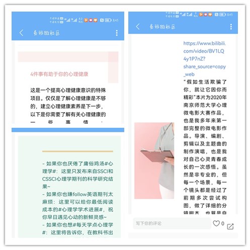 5月4日至6日,电气学院开展心理健康知识分享活动,活动依托易班工作平台,结合当前的疫情形势大学生心理的特点,围绕疫情防控背景下同学们可能会出现的心理上的问题及克服心理问题的办法,分享了相关知识的文章和视频,通过分享加深同学们对心理健康知识的掌握。
