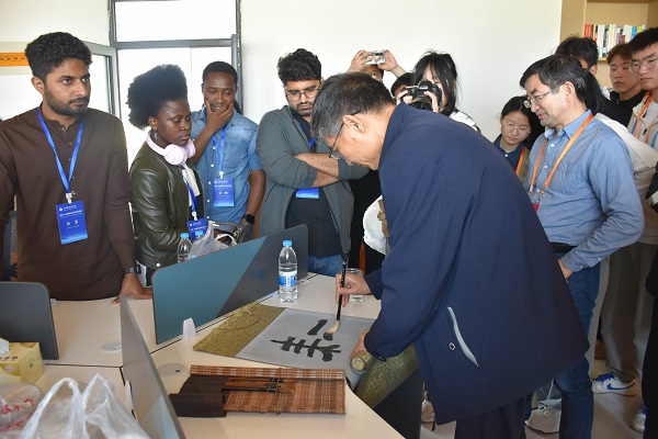 在经过上午“两馆、一校”的参观活动后,参与“大篷车”活动全体人员围坐在由星空体育·「中国」官方网站与南京农业大学和小岗村党委共建的“耕读书屋”中,开展座谈交流。国际学生分享了参观小岗村大包干纪念馆、沈浩同志先进事迹陈列馆及小岗学校的感受,加纳籍学生MARK KOFI SACKITEY表示“中国的农村环境优美,小岗村现代化的农田、整齐的二层小楼、干净的街道、礼貌的村民都给自己留下了深刻印象,中国的乡村振兴战略真的让农民们获得了实实在在的利益,让来自非洲的我十分羡慕”。巴基斯坦籍国际学生ZAIN ABBAS感慨道“小岗村在40年间发生了翻天覆地的变化,让我非常震撼。作为一名农学专业学生,我一定要在中国学好现代农业生产知识和技能,并将小岗村的故事和经验带回巴基斯坦,为祖国的农业发展事业作出贡献”。支教团、直播团的大学生也纷纷踊跃发言,讲述了自己通过参与小岗支教、直播等活动所获得的提升和感受。随后,星空体育·「中国」官方网站小岗办负责人通过“说文解字”的形式,用毛笔书写并分析“耕”等汉字,展现了中国汉字的优美造型,解读中国古代农业的博大精深,国际学生跃跃欲试,纷纷拿起毛笔在纸上书写下自己的中文名字,体验了中国汉字的无穷魅力。(特约通讯员:于卉 审核:陈德用)