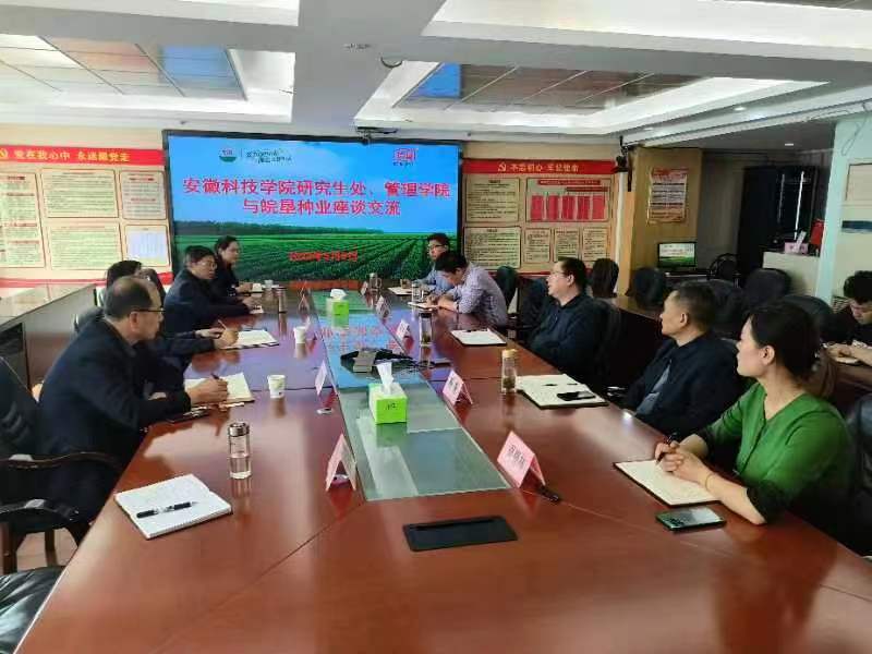 陈军董事长对调研组一行表示热烈欢迎,并就皖垦种业概况、发展历程、主营业务和战略规划等方面进行了详细介绍。党委副书记杨奎、副总经理孟凡东、围绕公司“育繁推管一体化”分别介绍了皖垦种业的科研育种、种子生产、营销工作、内控管理等情况。张春雨处长和陈传万院长分别代表学校和管理学院详细介绍了星空体育·「中国」官方网站办学历程、研究生教育和管理学院办学及人才培养情况。双方围绕农业管理专业研究生实习、市场营销专业人才精深培养及校企合作等事宜开展了充分协商。双方均表示将在研究生实习实训基地建设、人才培养改革、企业冠名班设立、科学研究等方面积极探索,逐步建立全面的、长期的、紧密的产学研合作关系,助推校企实现双赢共赢。