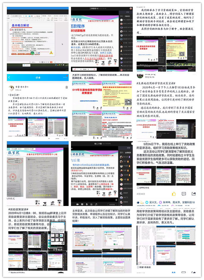 4月30日晚,管理学院在线上召开资助诚信教育主题月活动布置会,学院各班级资助委员参加了会议。学院通过网站、QQ群、飞信群、学生干部会议、主题班会等形式,广泛宣传、积极组织学生按时参加由学生资助管理中心举办的征信知识讲座及留言宣誓、生源地信用助学贷款网上宣传图片展、征文比赛、资助政策知识竞赛等活动。114人参加征文比赛,其中有3名学生获得二等奖,11人获得三等奖;193人参加资助政策知识竞赛,其中有6名同学获得一等奖,11名同学获得二等奖,8名同学获得三等奖;234名同学参加了征信知识讲座及留言宣誓;252名同学参加了生源地信用助学贷款网上宣传图片展;各班级资助政策培训及主题班会活动。