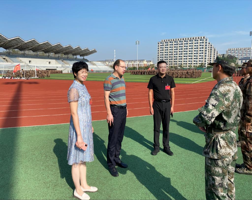9月26日上午,管理学院党委书记丁景良、党委副书记陶漫及全体新生辅导员看望慰问院2021级军训学员。