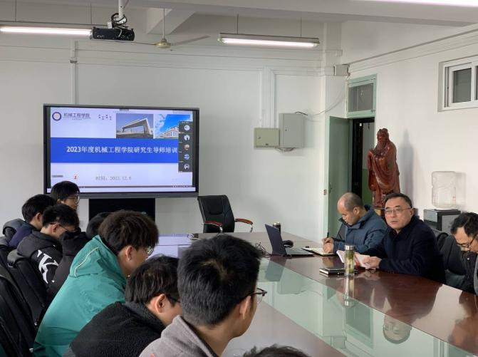 为进一步贯彻落实习近平新时代中国特色社会主义思想、党的二十大精神和全国研究生教育大会精神,全面落实研究生导师立德树人根本任务,深化我院研究生导师队伍建设,提升导师指导水平,结合我校导师培训总体安排和研究生处的文件精神,12月6日下午,机械工程学院举办2023年研究生指导教师培训会。会议采取线下线上相结合的方式,机械工程学院党委书记姚勇、副院长乔印虎、研究生秘书彭正、新聘研究生导师和研究生代表参加会议,会议由乔印虎主持。