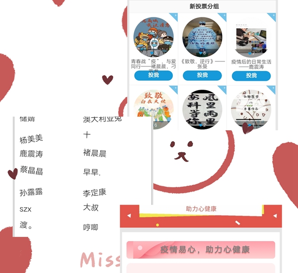 在短视频中,参赛选手通过分享自己在疫情期间的心理变化,展示了如何通过调整作息、适当运动、互助加油等形式抗击疫情,为中国加油,表达了对中国特色社会主义制度优势的由衷赞叹,展示了当代青年勇于担当、敢于斗争的良好精神面貌。参赛视频在易班上进行了展示投票,浏览量和点赞数达到1000余次。