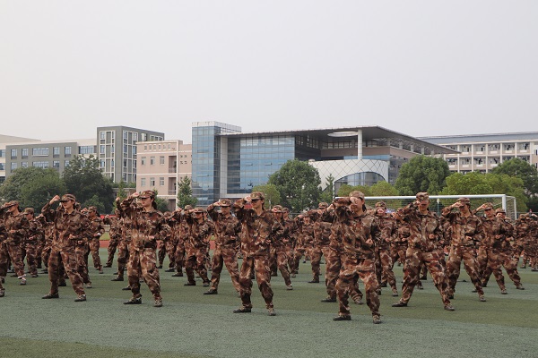 今年与往年不同的是,女生连队也开展了军体拳训练,军体拳所体现的是由拳打、脚踢、摔打、夺刀、夺枪等格斗动作组合而成的一种拳术。在教官的指导下,学生们认真学习一招一式,从一开始的不熟悉,到越来越熟练。出拳、旋转、勾拳,每个动作都打得有模有样,在保持方阵队形的前提下,她们跟着教官练习分解动作,保持每个动作的稳定性与高标准,成为训练场上一道靓丽的风景。