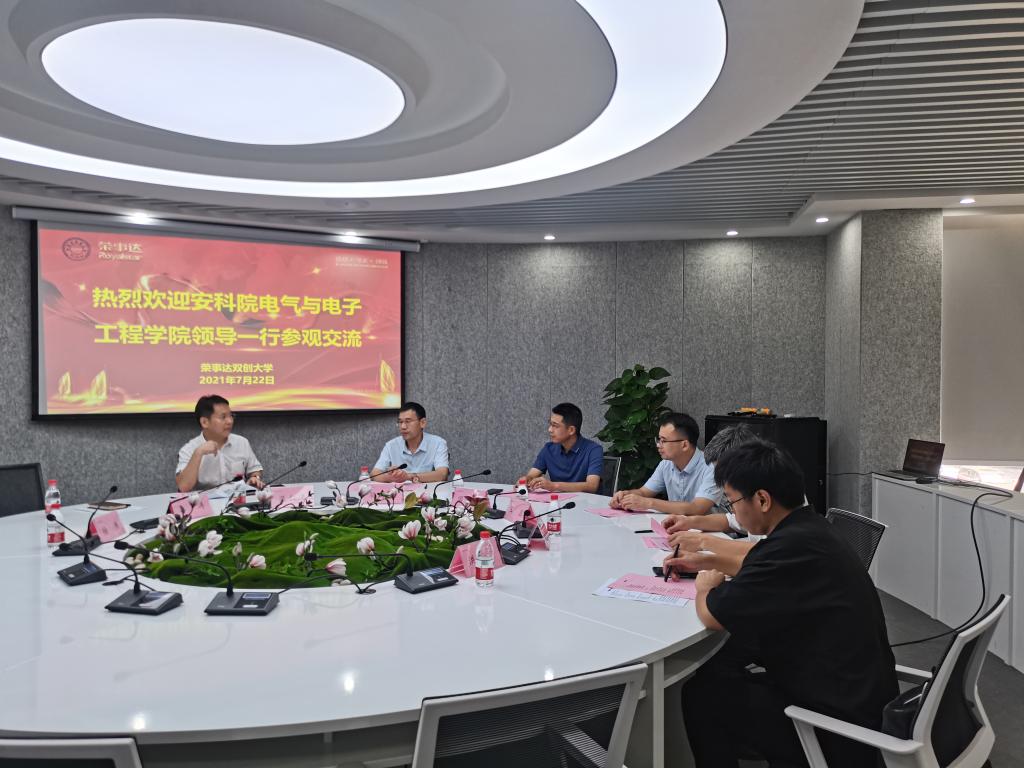 为加强对就业市场需求了解,增强校企合作,7月22日上午,电气与电子工程学院党委书记骆海邦、副院长国海、电子信息实验中心副主任王磊、光电工程系副主任樊晓宇及就业联系人洪乃羽组成调研工作组,赴合肥荣事达电子电器集团有限公司开展就业市场调研及校企合作交流工作。