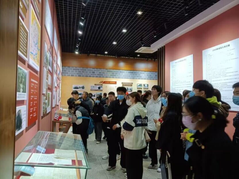 凭吊活动结束后,全体师生参观蚌埠市革命历史陈列馆,在陈列馆内认真学习,追忆蚌埠的革命历史,追忆那场人民用小推车推出来胜利的淮海战役……在陈列馆中摆放的革命烈士衣物、书信无不宣示着那段革命岁月的艰苦,发黄受损的纸张都是历史的印记,都诉说着那一段荡气回肠的英雄事迹。同学们在英名墙前,看着写满了一整墙的烈士姓名无不为之动容,和平来之不易,吾辈应自强。通过面对面接触革命先烈的遗物,追思具有革命英雄主义精神的革命烈士和战斗英雄,了解他们的英雄事迹,感受革命之艰苦,传承英雄遗志,思索人生方向。