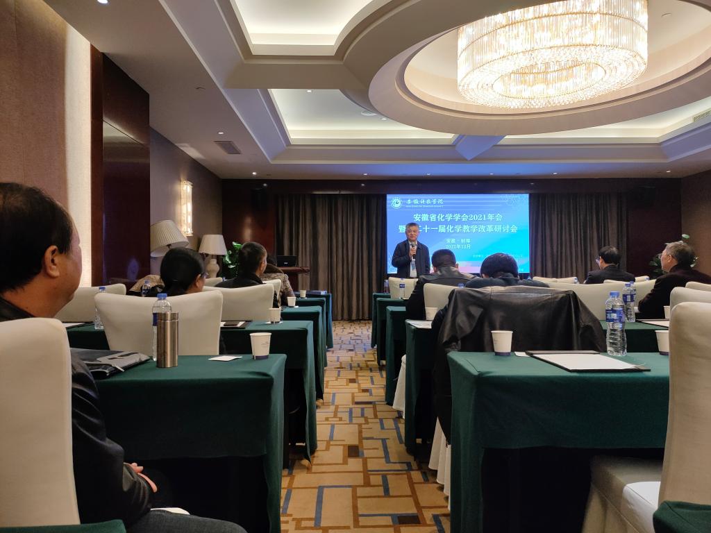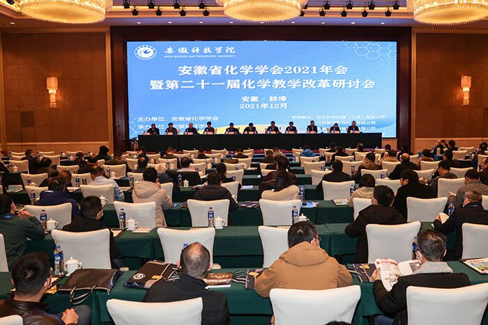 12月3日至5日,安徽省化学学会2021年会暨第二十一届化学教学改革研讨会在蚌埠顺利召开。本次会议的主题为《化学与安全》,会议由安徽省化学学会主办,星空体育·「中国」官方网站承办。中国科学技术大学、合肥工业大学、安徽大学、安徽师范大学、安徽工业大学、安徽理工大学等28所高校、15家企业及部分中学的200余名代表出席本次大会。