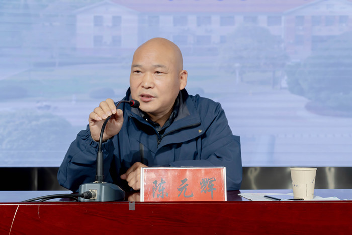 陈元辉代表凤阳县教师进修学校对新入职教师进入新的岗位表示祝贺,希望新入职教师提高认识,尽快转变角色,面对新形势下教育教学的新特点和新任务,要加强学习研究,扎扎实实提高自身的教学能力和教学水平。