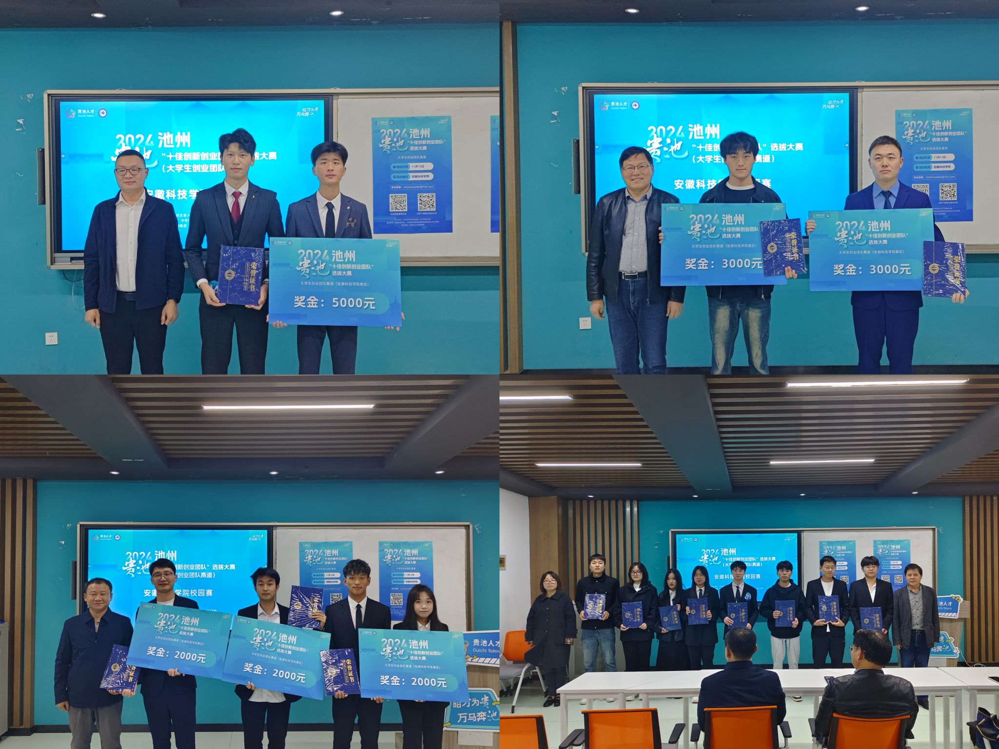 11月13日下午,池州·贵池“十佳创新创业团队”选拔大赛星空体育·「中国」官方网站校园赛决赛在凤阳校区落下帷幕。此次大赛由中共池州市贵池区委人才工作领导小组主办,校赛由生命与健康科学学院承办。池州市贵池区委组织部副部长张兆军,贵池区委人才工作领导小组办公室专职副主任钱伟伟,教务处副处长、创新创业学院副院长高青海,生命与健康科学学院副院长(主持工作)钱立生等出席决赛并为参赛团队颁奖。