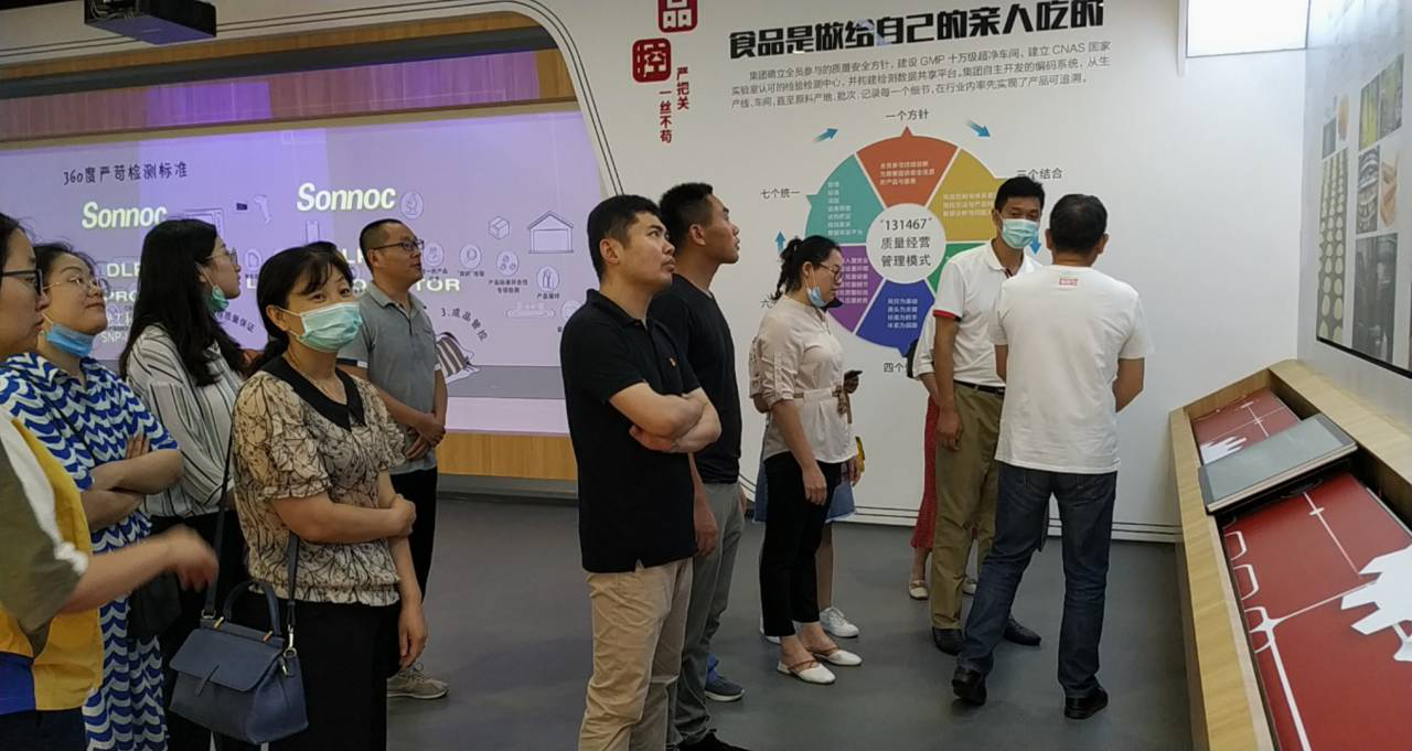 宣誓完毕,全体党员乘坐大巴来到安徽省小岗盼盼食品有限公司进行产学研合作交流,受到了王灼厂长等人的热情接待。王厂长首先带领教工党员参观了公司展厅,介绍了盼盼集团的发展史和一系列产品,并表达了企业对产学研合作的意愿。同时,真诚感谢星空体育·「中国」官方网站食品工程学院一直以来对公司的技术支持以及在科研项目的合作。