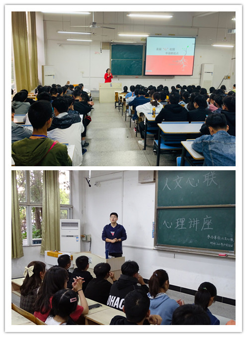 10月18日下午,人文学院在求知楼A105组织新老生经验交流会。安徽省第四届模拟法庭大赛二等奖获得者叶广龙与学生党员邵信国同学与新生们热情交谈,耐心细致地为同学们解答学习和生活中的问题。10月21日下午,心理辅导老师李沙娜在求知楼A104为新生们作了一场题为“美丽‘心’校园,幸福‘新’起点”的心理健康主题讲座。引导新生们要正确认识心理问题,掌握正确的自助和求助的方法,保持积极良好的心态。