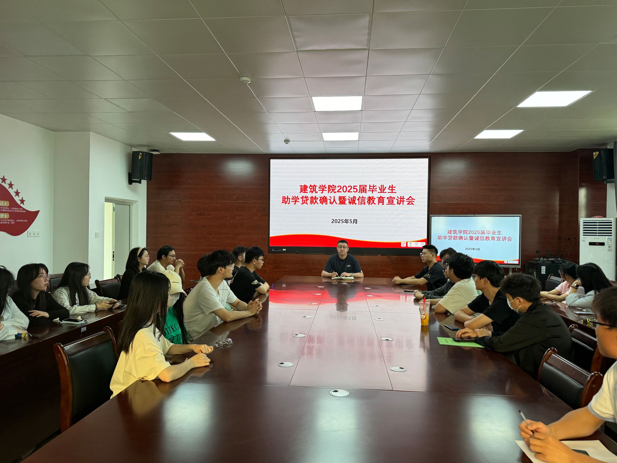 5月21日下午,建筑学院在尚行楼A301召开了2025届毕业生助学贷款诚信教育宣讲会,助学贷款的全体毕业生参加会议。会议由学院资助负责老师王明哲主持。