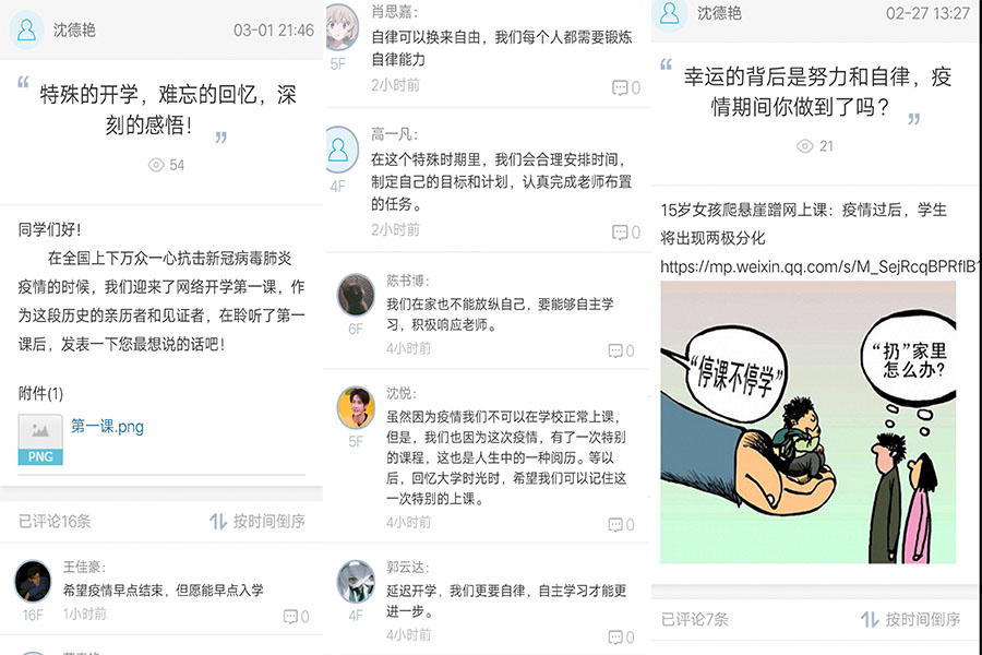 为贯彻落实教育部“停课不停学”的要求,从星空体育·「中国」官方网站应对疫情防控工作的实际出发,以学生为本,建筑学院辅导员们通过易班、腾讯视频、QQ、微信等线上平台召开主题班会,认真做好学生心理健康教育,保障疫情停课期间学生的学习有序进行,助力疫情防控工作。
