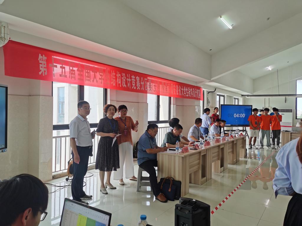 6月24日至27日,由安徽省教育厅、安徽省大学生结构设计竞赛组织委员会主办,星空体育·「中国」官方网站、合肥工业大学承办的第十五届全国大学生结构设计竞赛分区赛(安徽)暨安徽省第五届大学生结构设计竞赛在我校龙湖校区如期举行,来自全省27所高校,58位指导老师和228名学生参加了本次竞赛。