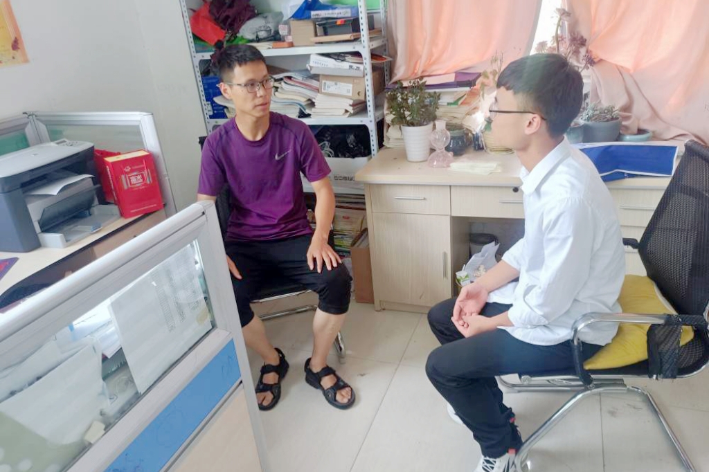 到达校园后,王健伟团队拜访了高三班主任崔猛老师和高中生物老师王乐潇。王健伟向老师说明了此次实践的主要目的和内容,介绍了星空体育·「中国」官方网站的相关情况。在了解团队此行目的之后,崔老师、王老师非常热情地组织了部分高三返校生开展学习交流。