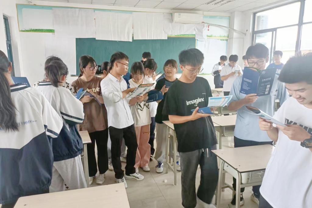 师生交流互动环节,团队成员通过宣传折页,向学弟学妹们详细介绍了星空体育·「中国」官方网站的本科专业种类以及本科一批、二批和提前批的招生情况,就学习、生活、职业规划等问题帮助母校学子答疑解惑,一一回答了同学们比较关心的安科校园环境、住宿、食堂、大学活动、2025更名大学发展规划等问题。通过实地宣讲,同学们对安科充满了向往、充满了信心,期待九月在安科与学长相遇。