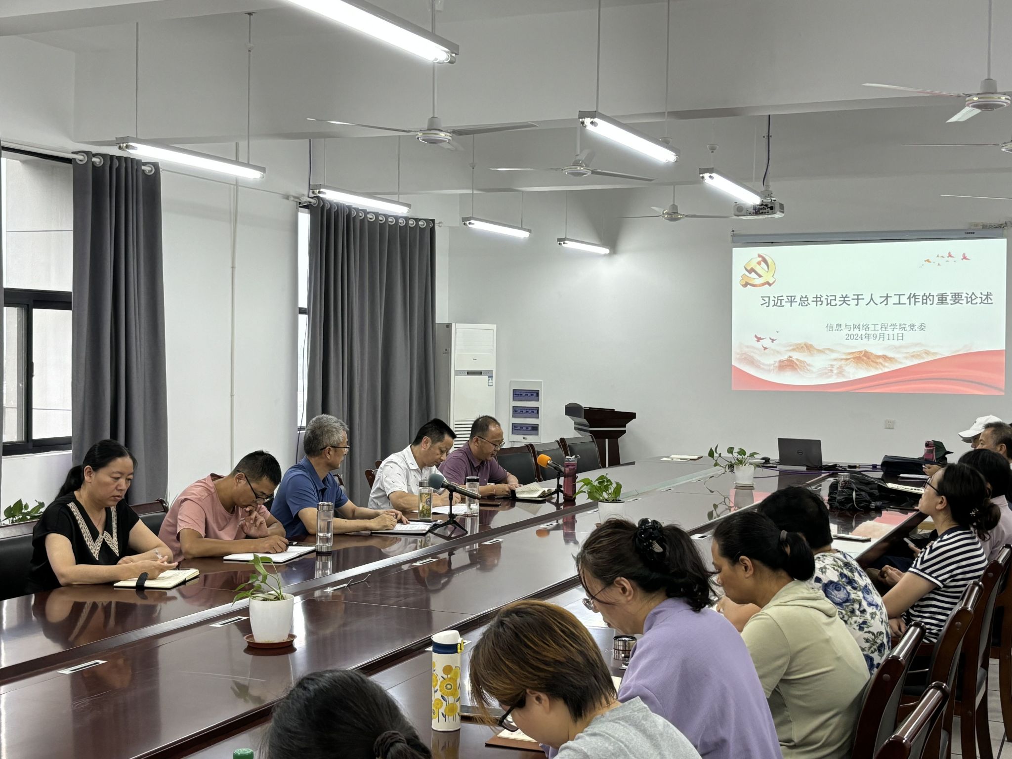 9月11日下午,信息与网络工程学院在尚行楼B418召开全体教职工大会。学院党政领导和全体教职工参加会议,会议由学院党委书记王振其主持。