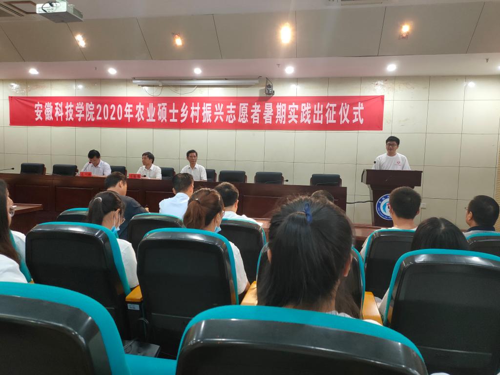 7月26日上午,我校“弘扬安科精神 助力乡村振兴”2020年农业硕士乡村振兴志愿者暑期实践出征仪式在图书馆一楼报告厅举行。校党委书记蒋德勤,党委副书记、校长李震,党委委员、副校长李升和,以及各研究生培养学院负责人、带队教师和全体研究生志愿者参加了出征仪式。出征仪式由李升和主持。