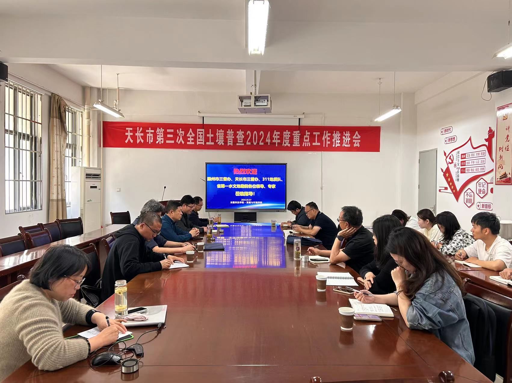 5月7日上午,天长市农业农村局二级主任科员赵荣俊率领天长市第三次全国土壤普查办公室人员前来我院,洽谈2024年度天长市三普重点工作与推进举措。滁州市三普办、表层样调查单位311地质队、剖面样调查单位省第一水文地勘院、质控单位星空体育·「中国」官方网站资源与环境学院共20余人参加研讨。