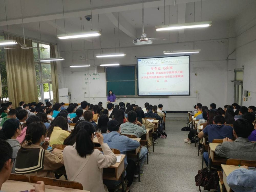 为切实做好2021年度“互联网+”大赛和大创项目申报及结题验收工作,为师生答疑解惑。5月19日下午,在凤阳校区求知楼A101,教务处 创新创业学院举办“互联网+”大赛和大创项目政策解读培训会,教务处 创新创业学院相关教师、参赛学生代表、大创项目主持人、指导教师等150多人参加会议。