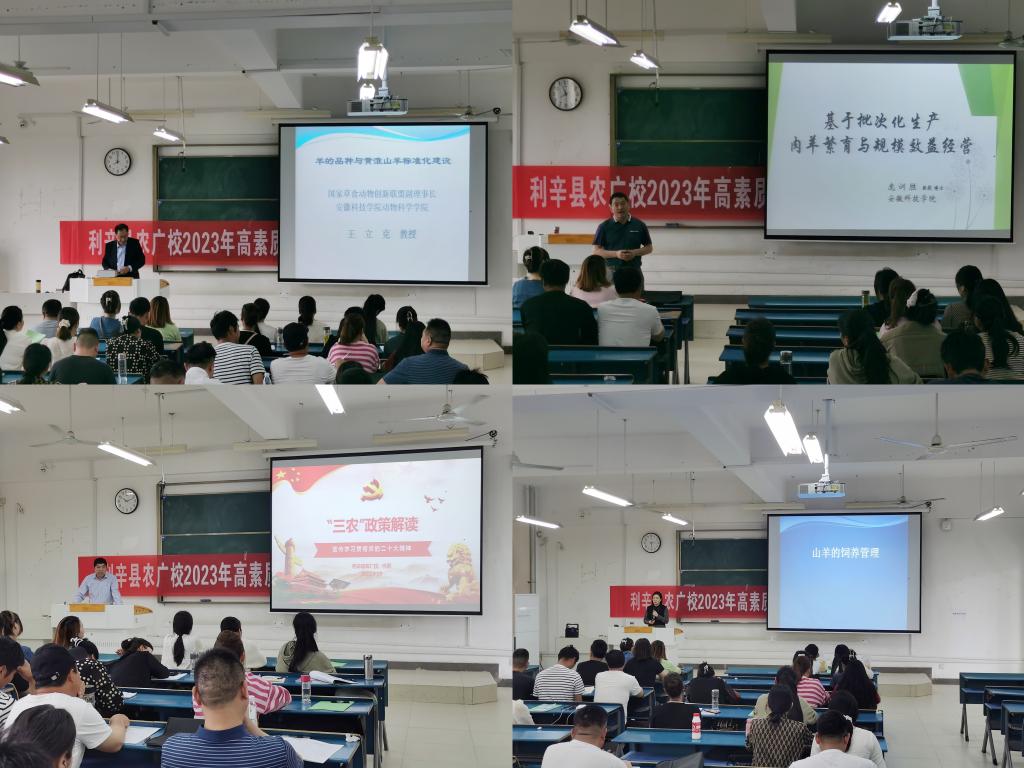 为了培养造就一批综合素质高、经营管理能力强、养殖技术过硬的黄淮山羊养殖专业家庭农场主,示范引领广大农民发展黄淮山羊养殖,发展地方优势农产品品牌,带动农民增收致富,促进农业扶贫产业转型升级、农村面貌的持续改变、农民素质不断提高,4月17日至19日,2023年利辛县高素质农民黄淮山羊养殖专业培训班在星空体育·「中国」官方网站第一报告厅开班,继续教育学院党支部书记、院长杨维来,利辛县农广校副校长李明,利辛县农广校工作人员、村干部、养殖合作社成员共60余人参加了开班典礼。