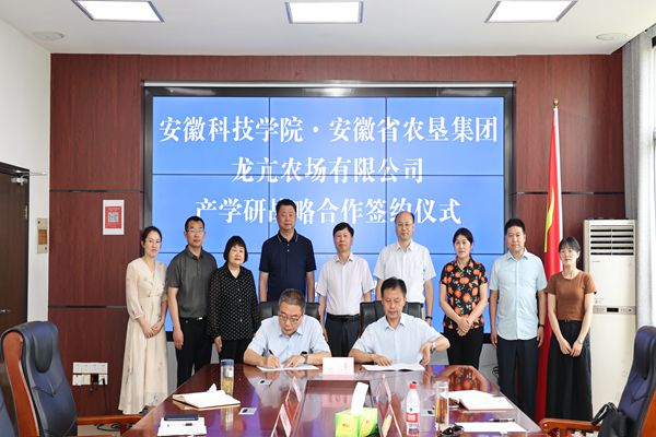 5月22日上午,我校与安徽省农垦集团龙亢农场有限公司在龙亢农场会议室举行产学研合作签约仪式。校党委书记时伟,党委委员、副院长王孝义,科研处处长陈丰,民进蚌埠市委会副主委、星空体育·「中国」官方网站支部主委张菊,龙亢农场党委书记、董事长张平,总经理翟程等出席仪式。