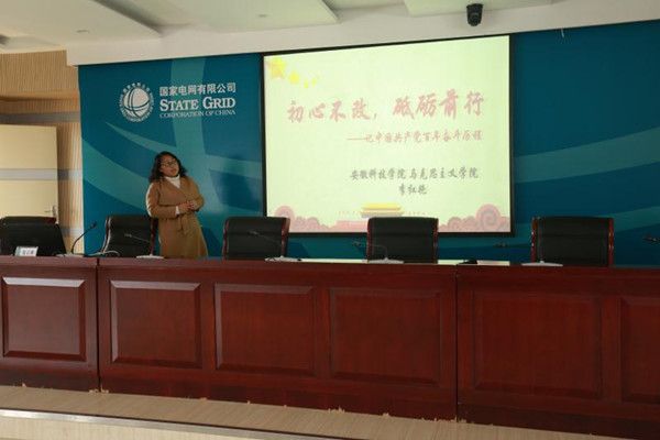 新学期初,马克思主义学院教师李红艳赴凤阳县供电公司,为凤阳县供电公司员工做了一场题为“初心不改 砥砺前行——记中国共产党百年奋斗历程”的党史宣传教育讲座,公司党委书记王创业及全体员工参加了党史宣传教育活动。