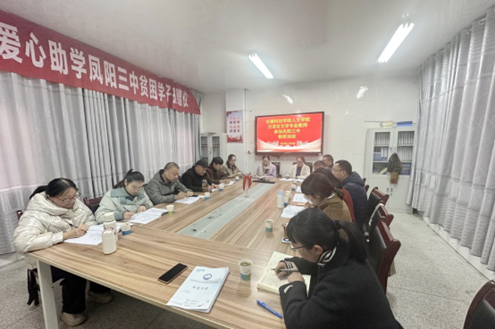11月26日,凤阳三中会议室,人文学院中文系教师胡春艳、曹宋艳受邀参加凤阳县汪灵芝名班主任工作室评课议课活动。
