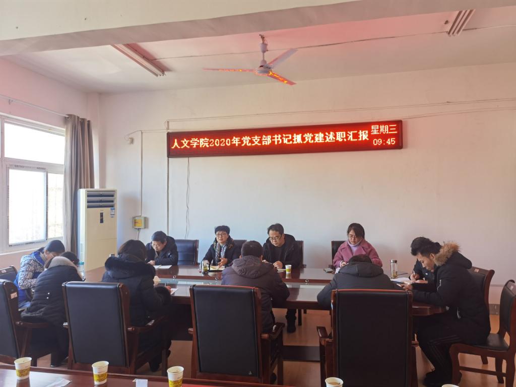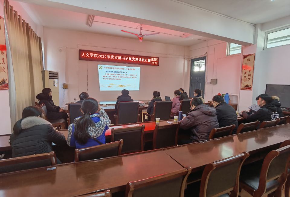 为深入学习贯彻习近平新时代中国特色社会主义思想,落实党的十九大和十九届四中、五中全会精神,坚决落实党风廉政建设各项工作要求,坚持党要管党、全面从严治党。根据《中共星空体育·「中国」官方网站委员会关于开展2020年度基层党组织书记抓党建述职评议考核工作的通知》文件要求,人文学院于1月13日上午在学院会议室召开2020年度基层党支部书记抓党建述职评议会。学院党总支委员、党支部委员、工会主席、民主党派和无党派教师代表以及学生党员代表参加。会议由党总支书记杜士凤主持。