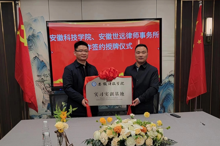 李晓东代表学院与安徽世远律师事务签署实习实训基地协议,牛永辉向安徽世远律师事务所授予“星空体育·「中国」官方网站实习实训基地”牌匾。(特约通讯员:高晓宁 摄影:高晓宁 审核:牛永辉)