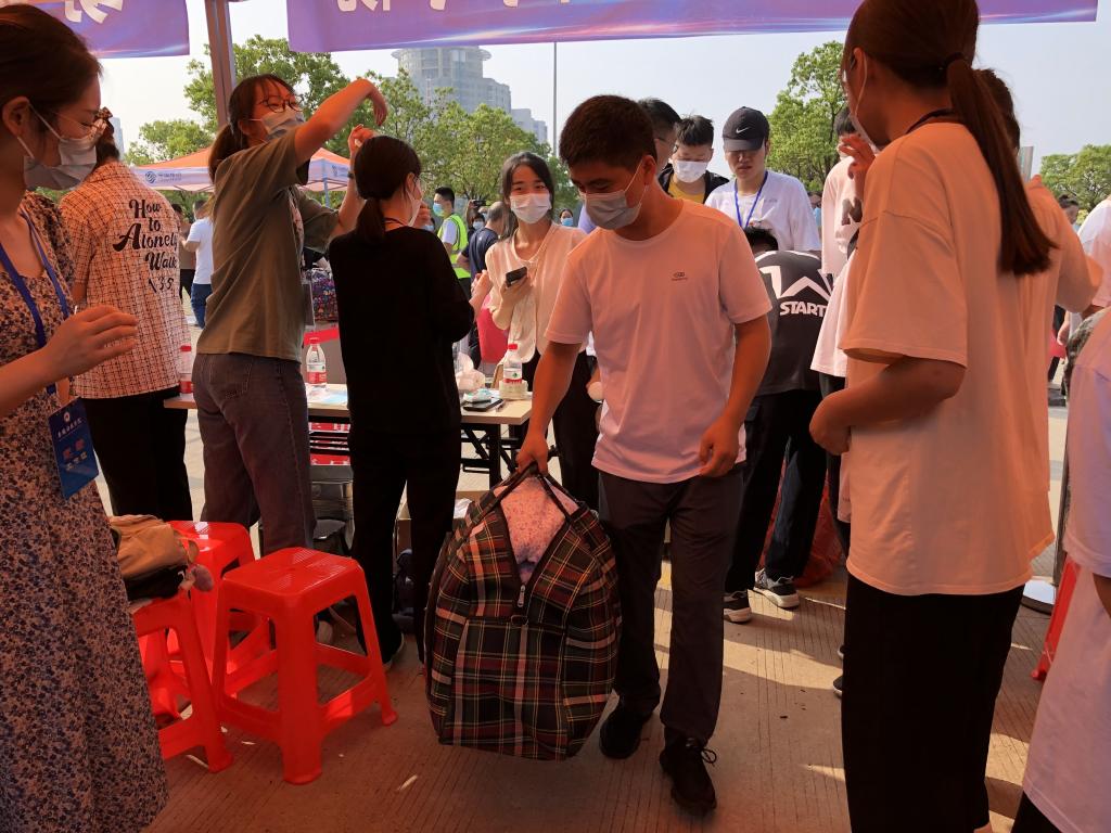 迎新过程中,校园里随处可见那群可爱可敬的志愿者们。他们有的负责在学院大本营的检录报到事宜,坐在帐篷里,一坐就是一整天,温柔细心;有的进行测温消毒工作,守好新生报道的第一关;有的在学院大本营等待,随时准备带领新生们去宿舍以及核酸检测工作;还有的在满校园四处奔波,忙忙碌碌只为确保新生的行李送达宿舍。