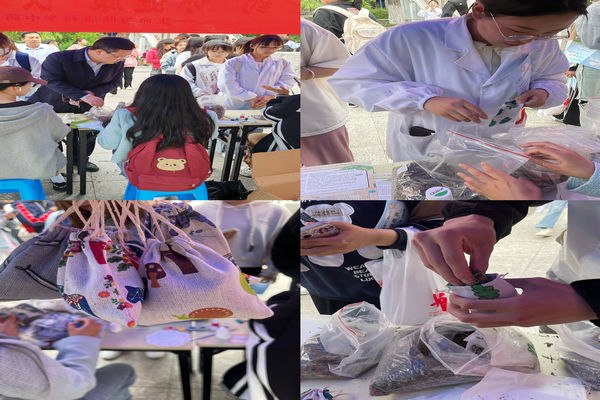 5月24日下午,生命与健康科学学院在西区广场举办中药香囊DIY活动,学院专职辅导员孙玉楼到场指导。活动中,工作人员为同学们准备了囊包与各种香料,如艾叶、薰衣草、陈皮等,供同学们挑选制作。小小香囊散发着淡淡清香,安抚了同学们浮躁的心灵,同时也激发了同学们的浓厚兴趣,纷纷跃跃欲试。从香料的挑选再到最后的包装,同学们小心进行每一步,认真的脸庞上写满了激动。部分校领导也来到摆点现场了解活动,表示中药香囊DIY不仅有趣新颖,还紧扣学院“健康”主题。期间,学生会心联部工作人员还准备了一些有关心理知识的小问题,同学们经过回答这些问题,增加了对心理方面知识的了解,有利于预防心理健康问题。