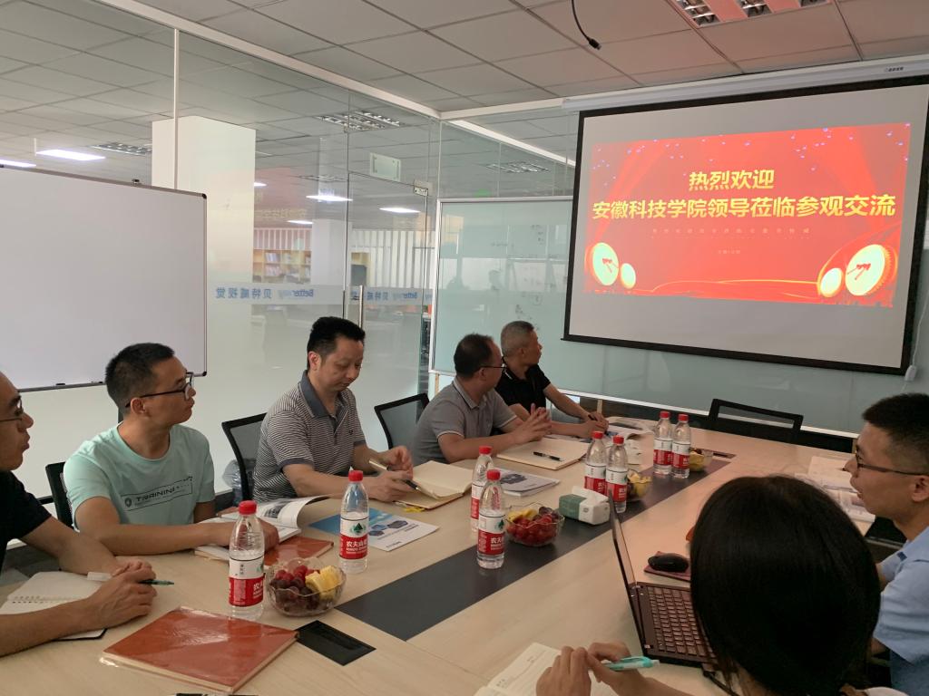 6月6日下午,在安徽贝特威智能科技有限公司,副总经理李晓冰详细介绍了公司发展规划、主营业务、人才培养计划和校企合作愿景,并带领大家参观了企业办公、宿舍、工作生活场所。座谈会上,双方就实践教学基地建设、学生实习实训、毕业生就业、项目联合攻关等方面内容进行了深入细致的交流,并就毕业生实习、就业和“职前通”校企合作融合课程共同开发等达成合作意向。