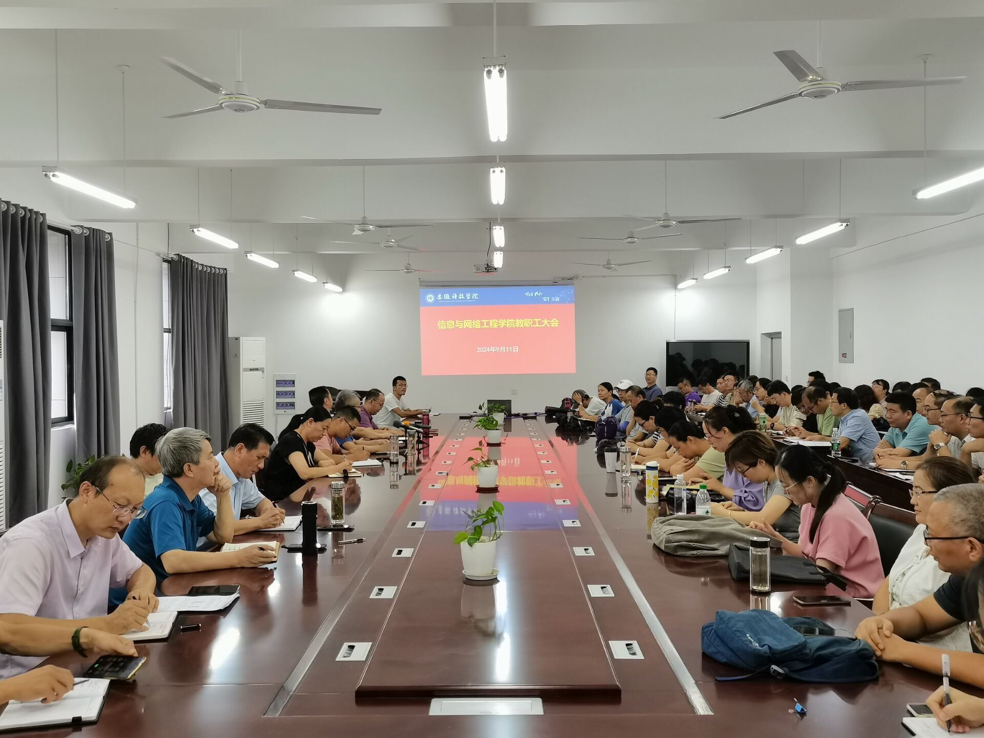 9月11日下午,信息与网络工程学院在尚行楼B418召开全体教职工大会。学院党政领导和全体教职工参加会议,会议由学院党委书记王振其主持。